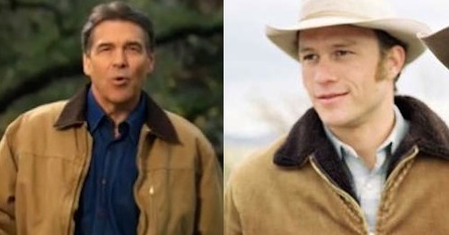 On the brighter side, many have responded to Perry’s now-viral “Strong” ad, with a great deal of parody videos, everything from BadLipReading.com’s interpretation of Perry’s ad (“Man, he’d scalp a sentimental cripple! What a douche,”) to Funny Or Die’s parody “Weak” (“Did you know [gays] can [even] serve coffee in Starbucks?”) and Stephen Colbert’s consideration of Rick Perry’s ad, which comes complete with two sexy Santa-men making out under the mistletoe. Watch and marvel at the ridiculous amount of Brokeback Mountain-esque jackets in existence.