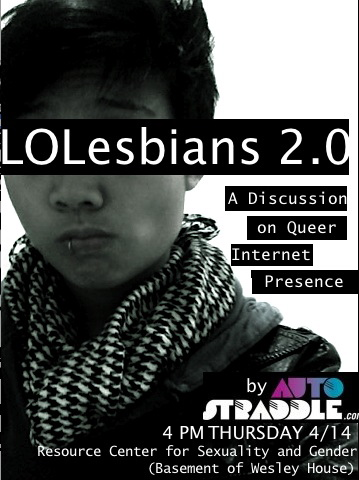 Lolesbians 2.0 is a workshop focusing on lesbian visibility and the Internet. Led by Katrina Casino, a senior writer for the queer media culture Web site Autostraddle.com, Lolesbians will discuss the the Internet as a space in which queer women have the power to create our own visibility. Recognizing that the queer community is not something that simply exists in a physical location but rather as a stream of ideas and identities, we will discuss the Internet as a tool for organizing around not just events but ideas and address how to actualize these ideas off-line. We are here to prove that the Internet is not only a forum to discuss who we are, it is a means to create who we want to be.