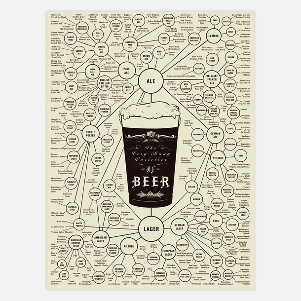 10. Many Varieties of Beer Poster, $25 — To hang in the corner of home reserved for brewing or drinking.