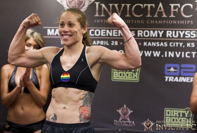 So far the UFC has been really awesome and taken me in with open arms. I’ve experienced no bigotry towards me being a lesbian and being out. If anything, they’re trying to open up doors and position me as a role model for the community and help me reach out to people. It’s amazing and something I never would have expected. The organization is great because you’re beating your body up every day, in and out, non-stop. From broken fingers to broken noses, you fight through it and yet the most amazing thing to come from this for me has been meeting great people. I’ve seen people from all walks of life that I never thought would be fighters be competing and that’s been the most surprising and rewarding experience.