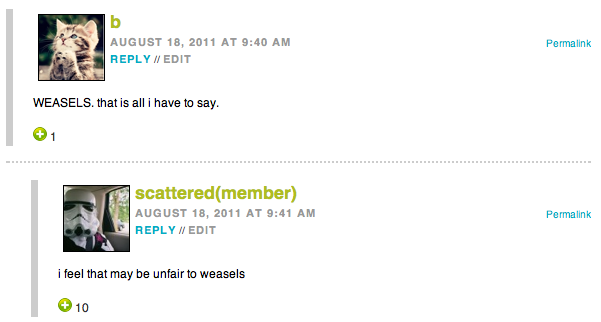 For those of you who prefer music to podchat, we’ve got some stuff for you. Crystal made a playlist about heavier music, Laneia brought 2003 back, and Taylor has all the spotify and turntable.fm news you need to know. Lady Gaga’s new single debuted this week and while I’m feeling a little meh about the song, you can’t deny that something good is happening with this video. Besides her usual Pretty Little Liars fashioncap, Lizz brought you an important PSA about pairing tights with shorts. The Ethics of Lust returned with a riveting discussion of the (il)legality of sex toys, Carmen Fucking Rios sluttalked and walked, and Carolyn read lesbian pulp fiction. We reflected on the life of LGBT activist Christina Santiago, a victim of the stage collapse in Indiana. Laneia made (a?) sushi bowl, Abby and Lani won the wedding giveaway, and Unicorn Plan-it has a teaser and pictures. Onward ho (anyone who wants to stage a pirate-themed slutwalk can bill me later for the slogan)! Let’s check out the ASS group of the week.