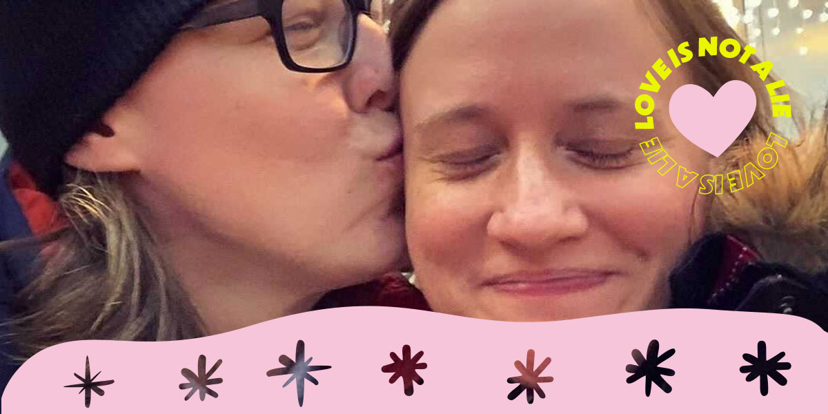 While our family watched, our officiant pronounced us married. I wore a suit and Stacy wore a suit. We were girlfriends for ten years, brides for ten minutes, and then we were wives. One string of Christmas lights draped over the bookshelf and my childhood teddy bear as decoration; our cats watching on; the only wedding either of us had ever imagined.