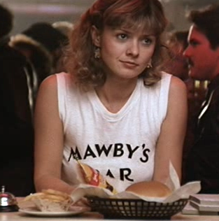 Are you okay? Are you still here? Good. Well, in the midst of my Jennifer Beals-induced haze, I noticed the tank top her pal Jeanie wears at the bar where they work, Mawby’s. My heart was immediately a-flutter no longer just thanks to Beals’ bod, but (nerd alert) that font!