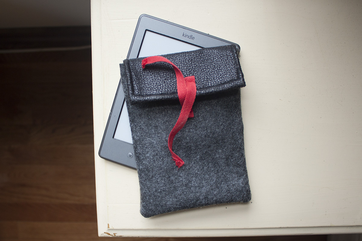 This pattern fits my Kindle (I believe the correct name for this model is “hella old”), but to make a custom one, just trace around your e-reader or tablet, leaving an extra half inch on all sides (and an extra five inches at the top for the back piece).