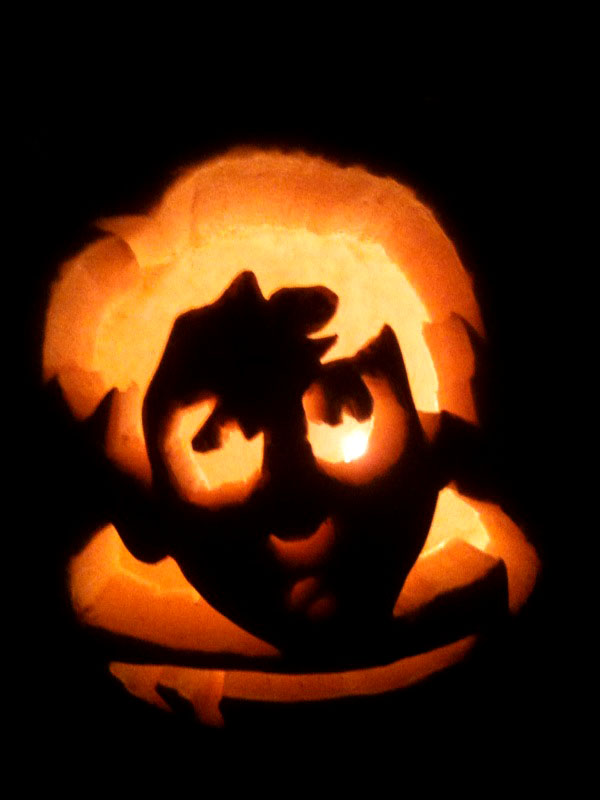 Four score and seven years ago, we told you that if you carved a pumpkin we might give you a prize for it. We may even have used the word “thunderdome.” And lo, some of you miscreants actually did it! And sent us pictures! Not all of you, because the rest of you are dead on the inside/hate fun. No I’m sorry that’s not true, you are just busy or have lives or do not want to buy a food product just to stab it until a recognizable pattern appears. I didn’t even carve a pumpkin, but that’s because I live in a little box alone with no porch or stoop to put it on and I would have just had to keep it inside and it would have started rotting and I don’t know, that seems sad. But some of you went all out on pumpkin carving, and I am glad you did! Check out your hard work!