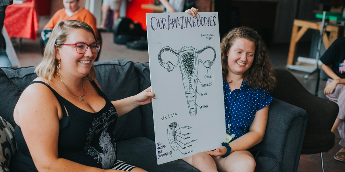 Turner started to think about sustainability, and never really wanted to carry the project all by herself. In the last year she was able to raise about five thousand dollars, through grants and a Facebook fundraiser on her birthday: “So I’m out here spending my birthday money [on this project.]” And last year, Turner was able to traine twenty new educators, a quarter of them teenagers and most are queer. The call was open to anybody, but the majority of participants were queer femme, which Turner attributes to being “haunted by the myth of virginity our whole lives.”