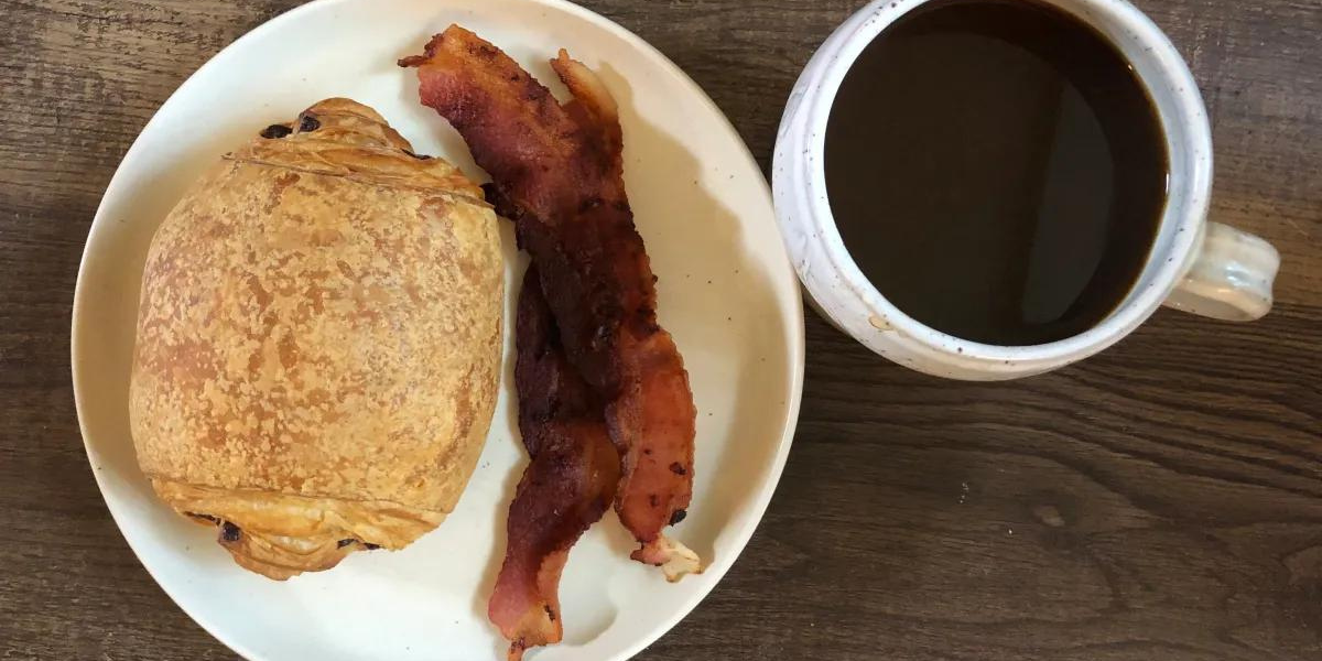 The picture isn’t doing it justice, but to be fair, that’s partially because Kristen and I always skip the egg wash step, much to the chagrin of my family who insists it’s necessary. I don’t like using up an egg! In this economy?! So even though the croissant above looks a little mottled, I promise it’s delicious. Trader Joe’s has cracked some sort of code with these bad boys. They taste about as close to a bakery’s offerings as you can get at home without, you know, actually making them from scratch. I like mine with a side of bacon, a classic sweet and salty combination.