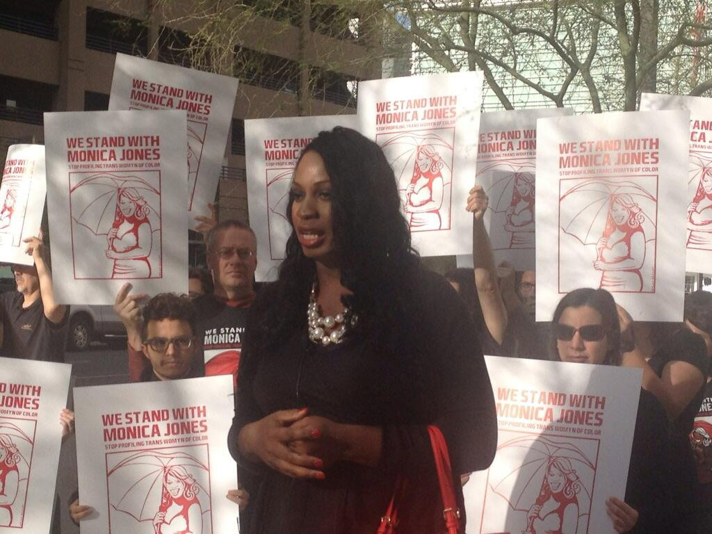 The ways in which Jones’ identity as a black trans woman and sex workers’ activist inform her arrest can’t be ignored. Much like CeCe McDonald’s arrest was impacted by racism and transmisogyny, Jones’ arrest is impossible to separate from her race, gender, trans status, and public activism around sex work. TransAdvocate points out that trans women are already disproportionate recipients of police scrutiny, and trans status can intersect with racial profiling to make police interactions particularly fraught and dangerous. What research there is on the interactions between trans women of color and police tells us that police intimidation is a constant reality, even without a legitimate basis for arrest. If anything about the situation can be interpreted to relate to sex work, the odds are that much worse.
