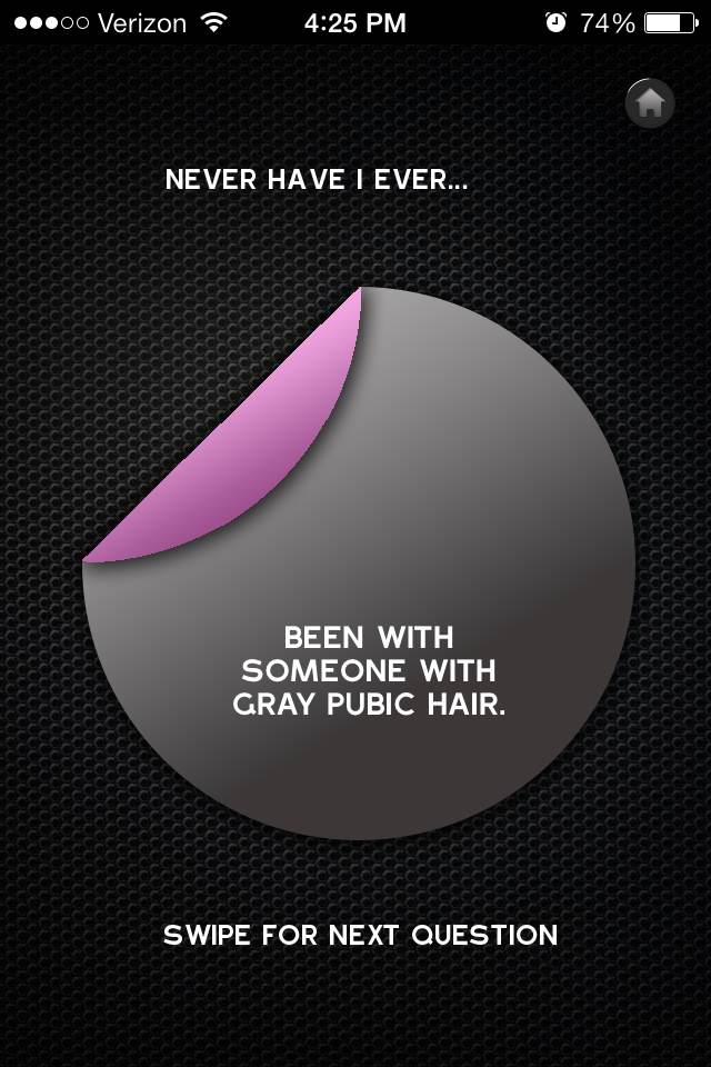 What if you’re feeling fancy and shit and/or just don’t want to think up things you’ve never done? There’s an app for that! Meet Gay Never Have I Ever for iPhone and iPad. In this version of the game, the phone tells you the never have I evers, and you can drink if you’ve done it. Or make up your own rules! Everyone who has done it has to stick their face in the snow. (I realize there’s no snow right now for most of us but I’m ready.)