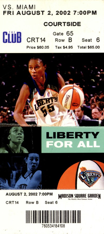 An original 2002 Liberty ticket stub, from the team’s early days playing at Madison Square Garden, hangs on the wall. Its weathered edges and faded ink are a testament to a different era of women’s basketball. That season, the team was led by Teresa Weatherspoon, Becky Hammon, Vickie Johnson, and more — a powerhouse roster of trailblazing athletes whose talent, charisma, and resilience helped define the early WNBA and laid the groundwork for the visibility and popularity of women’s sports today.
