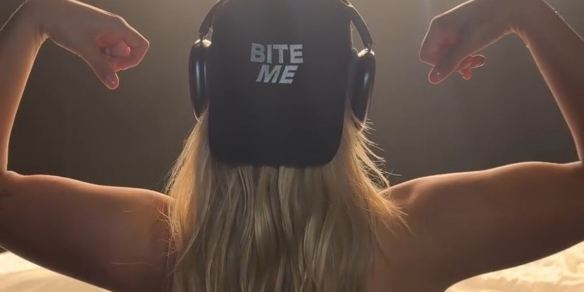 That’s our girl Renee, topless and working on music! That’s what I like to see!