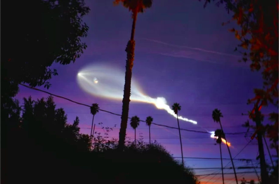 Throwback: remember when Autostraddle talked to SpaceX Engineer Joy Dunn about Falcon 9? So cool. Check out these awesome photos of last week’s Iridium4 launch, which carried 10 Iridium Next communications satellites into orbit. As the first stage of the rocket passed through an area of cold, dry air, the exhaust froze, creating this striking image in the post-sunset glow.