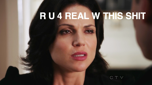 They also jump right into the whole grandparent role, which is complicated for their sworn enemy Regina, who is Henry’s adoptive mother and the one who actually fucking raised him and has been a parent longer than anyone else involved in his life, but you know, what does that matter when there’s biology to be prioritized? Haha Disney, you raging piece of shit. They don’t want Regina raising Henry because she’s sooooper evil, but IDK, he seems to have turned out alright to me?