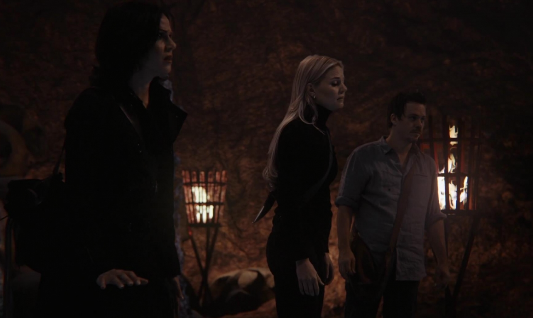 Of course, they can’t get through because they have shadows, which means they’re going to have to move the fucking moon out of the way to get rid of their shadows. Regina can’t do it alone since moving a literal space entity is pretty exhausting, so it’s a good thing she’s been doing all “teaching” with Emma. Neal’s look after hearing about Emma and Regina’s lessons might as well have been a clip from the first season of The L Word.