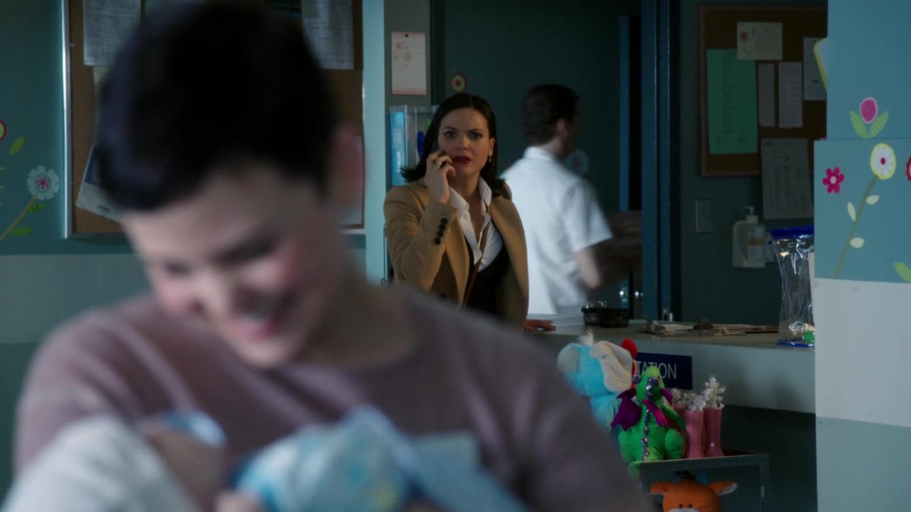 Back in the semi-reality of 11 years ago, Regina goes to the exchanges and returns counter at the adoption center. The guy gives her a knowing look and says he’ll be back in five minutes, say what? Lady is trying to give back the baby you gave her and you’re going to leave her alone with it? But then the little ticking time bomb of mortality and destruction that is infant Henry does his cute routine and Regina decides she wants him after all. Because even though she felt he deserved better, he really didn’t. Aw, my cold little heart just gave a few phantom thumps, revealing I’m still alive even after this bogus adoption policy plotline.