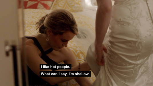 But it’s a flashback. Polly’s getting married. Piper describes her sexuality as: