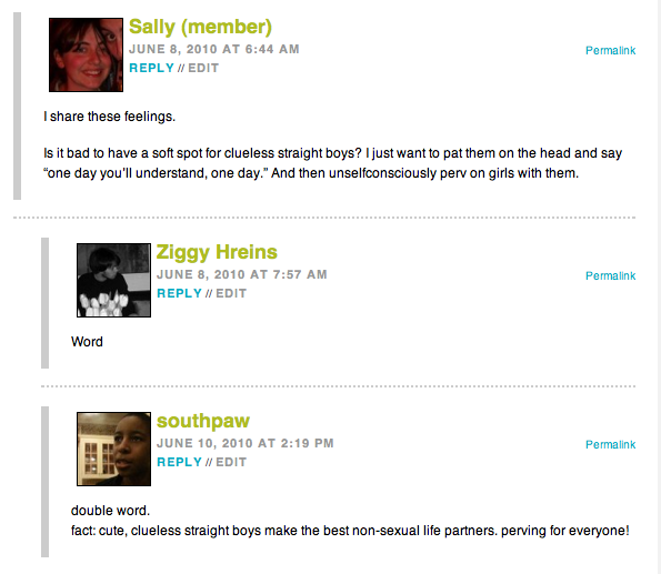 The Straight Boys, Not Diamonds, are a Girl’s Best Friend Award to Sally, and southpaw: