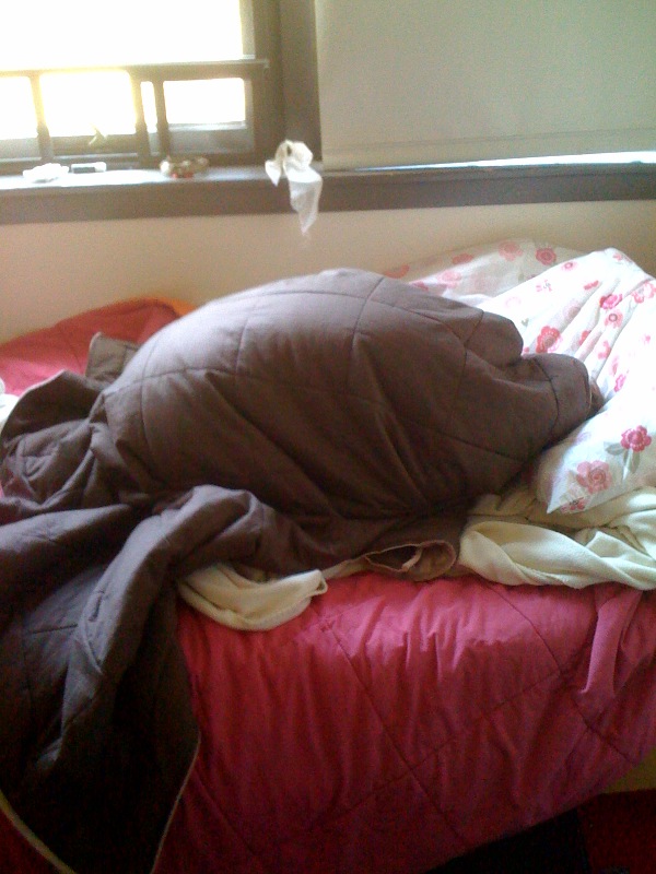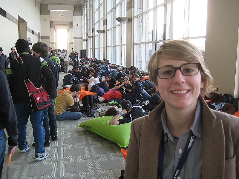 As this image of Kelsey clearly depicts, Day 1 of Pax East 2010 got off to a rather rocky start. In this photo, Kelsey is curled into a ball because she is hungover. And that’s why no one should drink to excess and you should always get 8 hours of sleep and also brush your goddamn teeth while you’re at it you little reprobates.