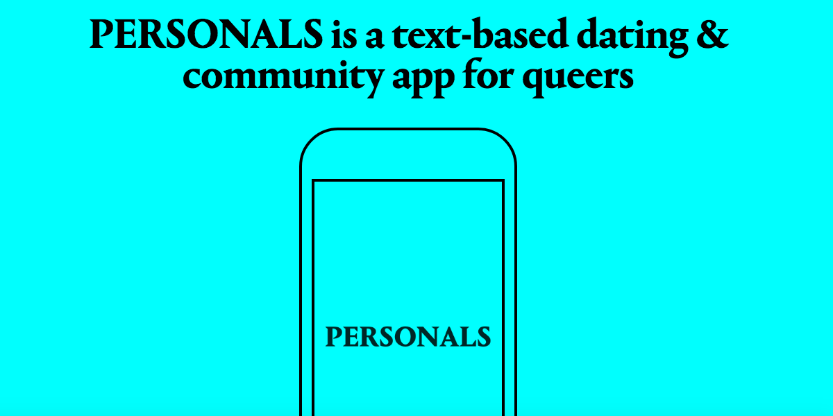 The number one task to get the app built is spreading the word. Tell your queer friends, your lovers to follow @_personals_! And once the crowdfunding campaign is live [tomorrow], donate – if you are able to – or even better, share the Kickstarter page with friends.