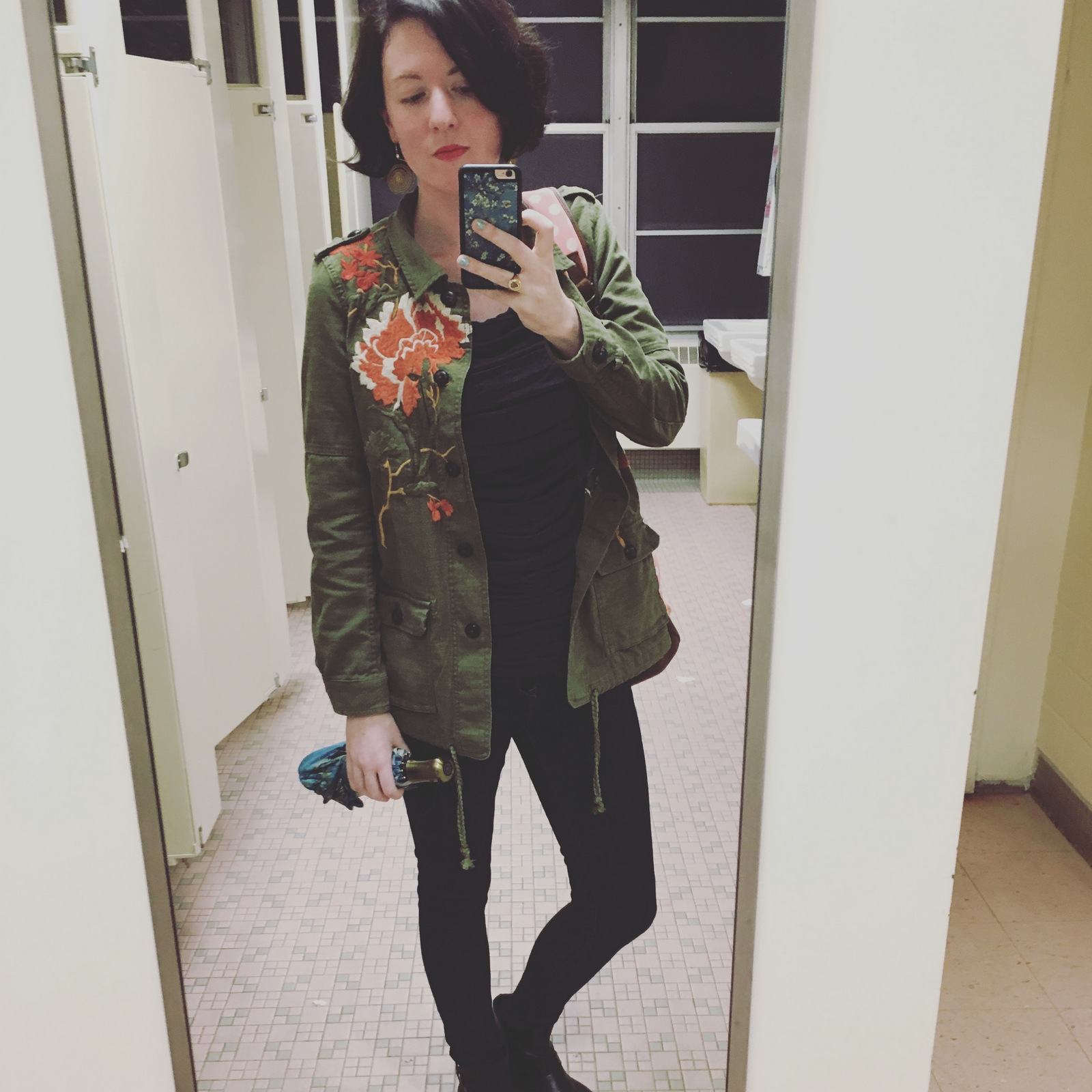 “I took this in the bathroom after teaching an undergraduate creative writing class. Since coming out to myself about a year ago (“not straight” is the most concrete conclusion I’ve drawn so far, but I’m learning to be comfortable with uncertainty), I’ve found myself documenting moments when I felt particularly unapologetic.”