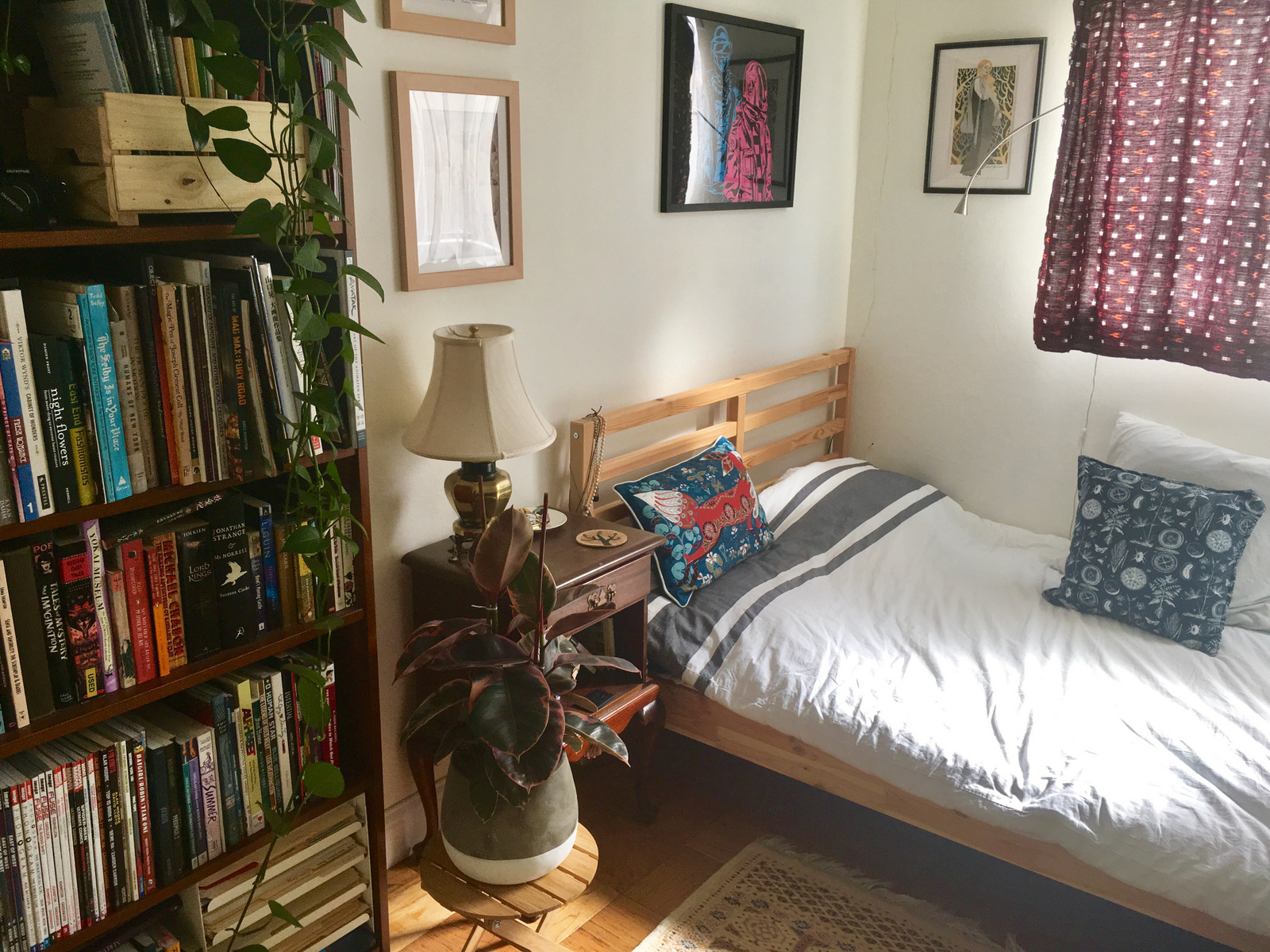 “I love filling my bedroom with my favorite things – my plant collection (it takes me an hour to water them all), my art prints (I also have more than I can hang), and my comics/zines (thankfully a more reasonable amount).”