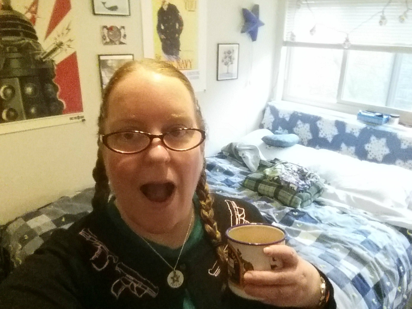 “I usually have pretty positive thoughts before falling asleep (“wow, books are so great”/”why is this dog so cute?”/”what is Gillian Anderson doing right now?”), but the second I wake up everything is terrible – until I have a cup of coffee.”