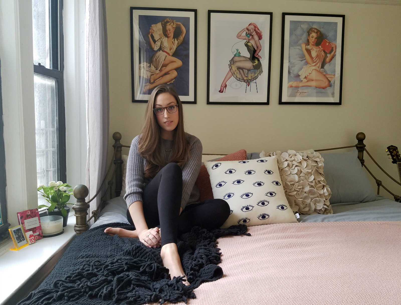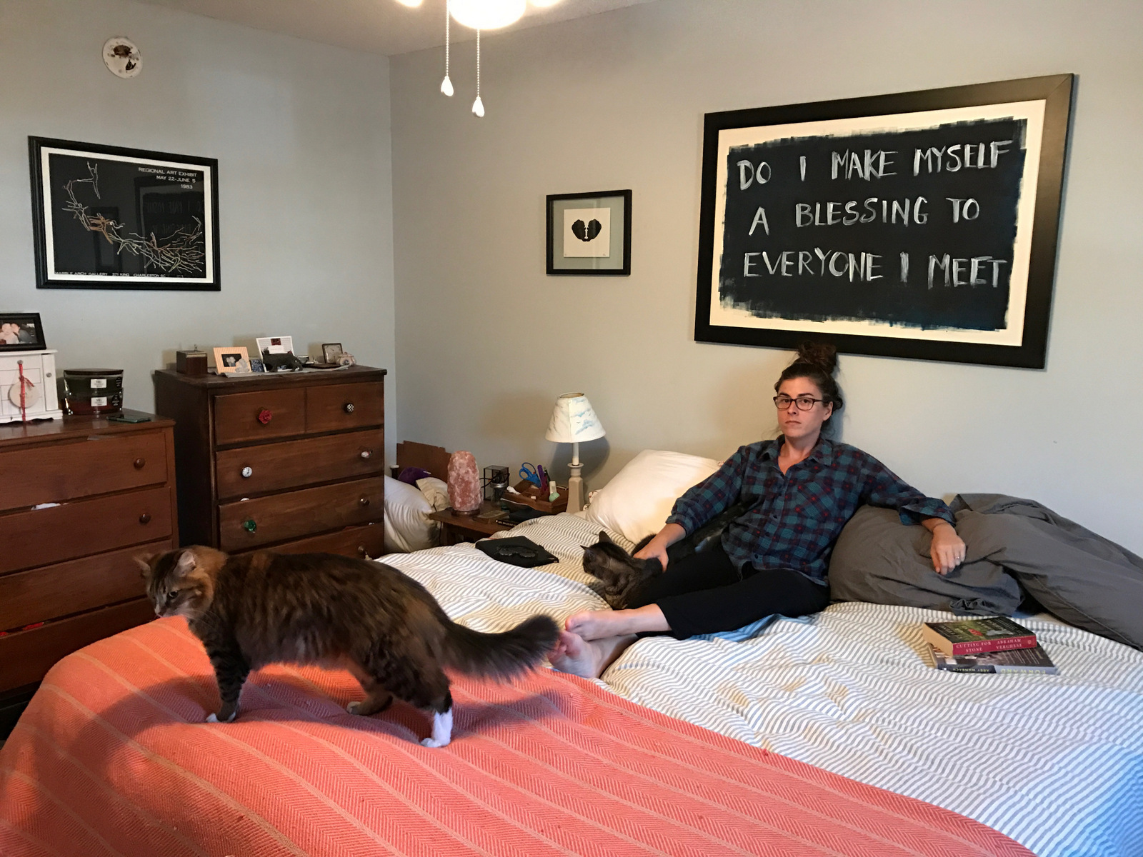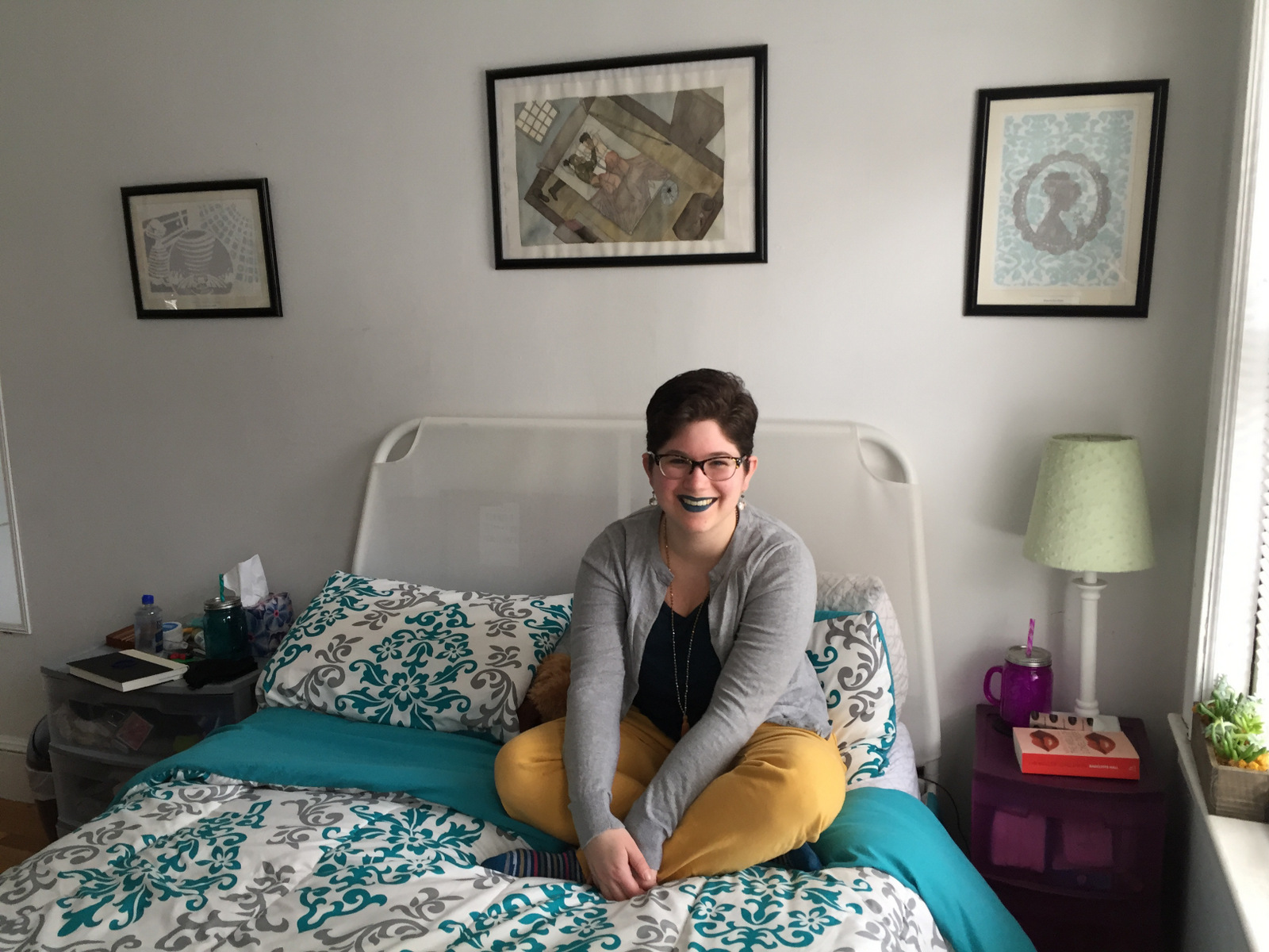 “This is my new bedroom. I share it with my boyfriend Ben. For a queer girl in a relationship with a man, falling asleep every night next to someone who sees and embraces your identity is so important. This bedroom hasn’t yet been graced with non-monogamous play, but we’ll see what 2017 holds.”