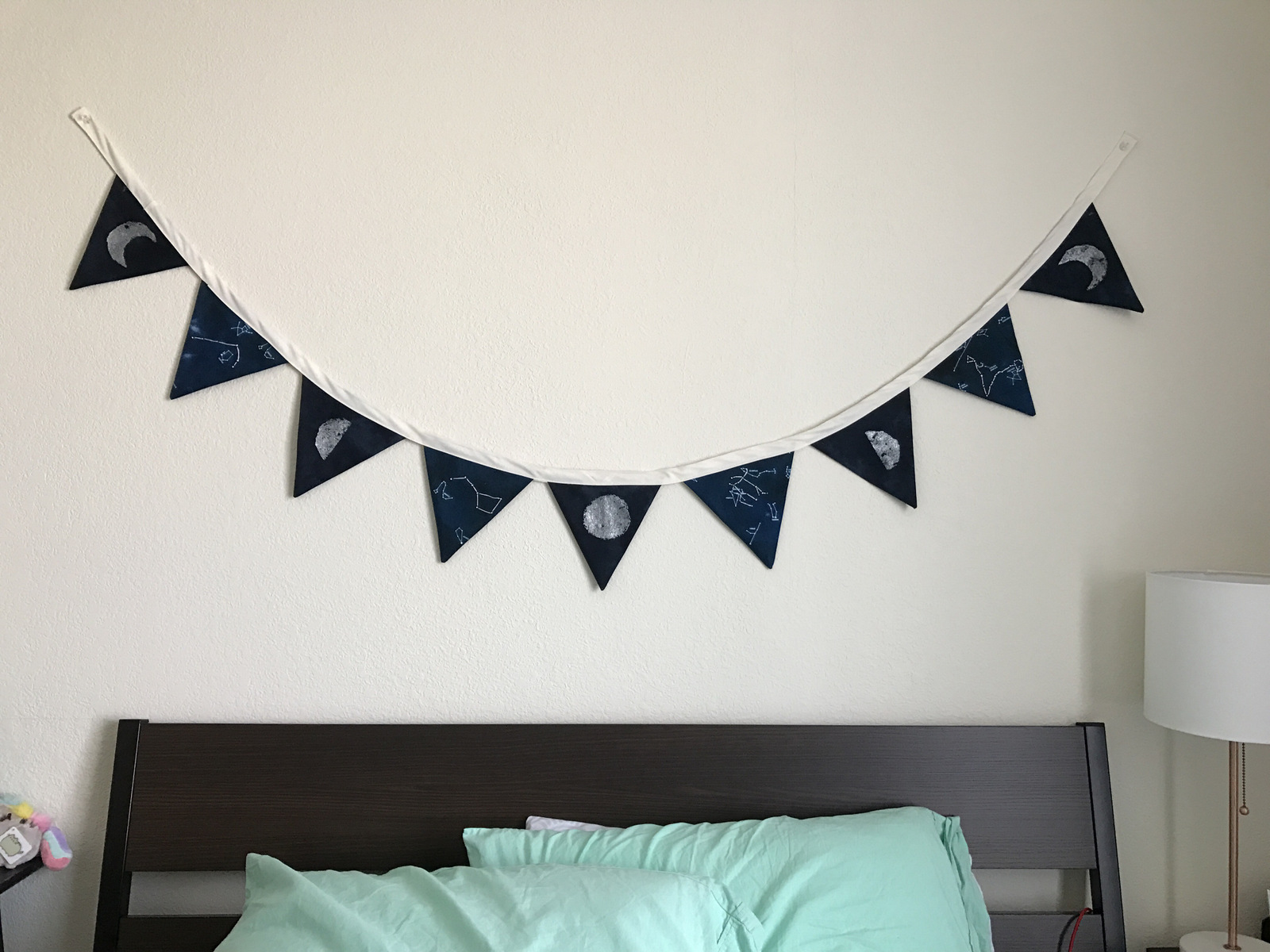 “My room is my haven. I recently moved into the place I live after getting out of a 7 year relationship and I’m proud that my room is a reflection of me. It’s filled with DIY projects, meaningful art, and small details that reflect my personality. My favorite item is the space themed fabric bunting I made that hangs above my bed. I embroidered a few constellations on it and stamped the phases of the moon.”
