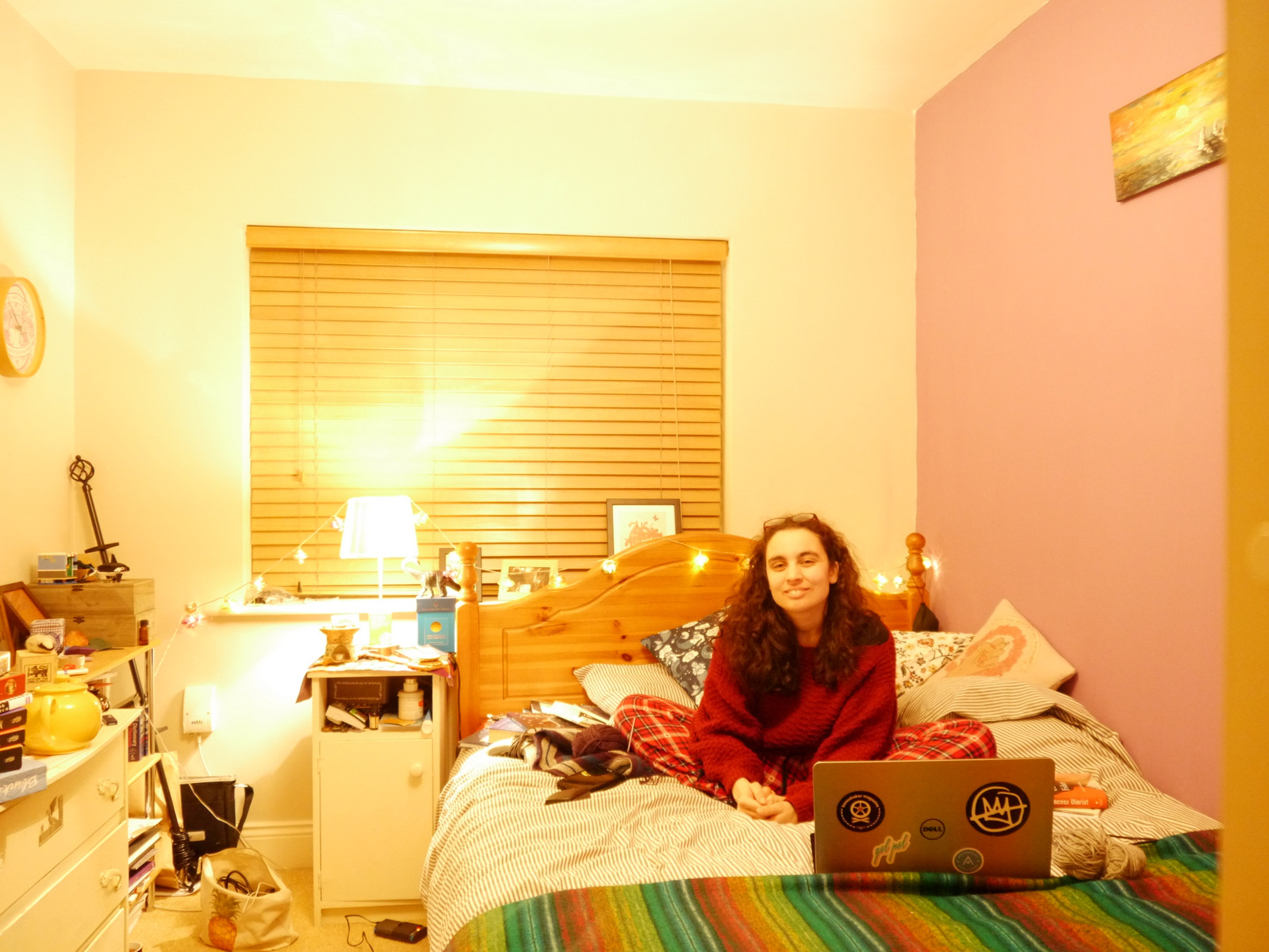 “The first thing on my To Do list after becoming self employed was to set up a work station in my room. I bought a cute little desk that I spent two hours building, and a LED lamp for those late nights of editing. I felt so legit having a desk, and yet I always work from bed. My desk is either covered in things I don’t feel like putting away, or completely clear. Oh well… I tried!”
