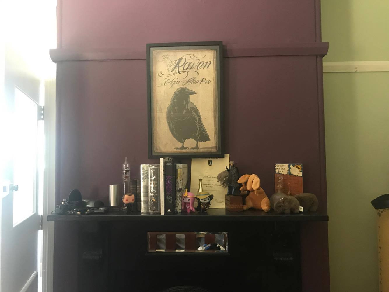 “This room came furnished and decorated when I moved in six weeks ago, and had weird vibes. I was talking about it to a couple of friends at a bar and some queer witchy folks a few tables down overheard and offered to come do some cleansing spells. So, that gave me the motivation to rearrange the furniture and change the decorations before they come over and it already feels infinitely better.”