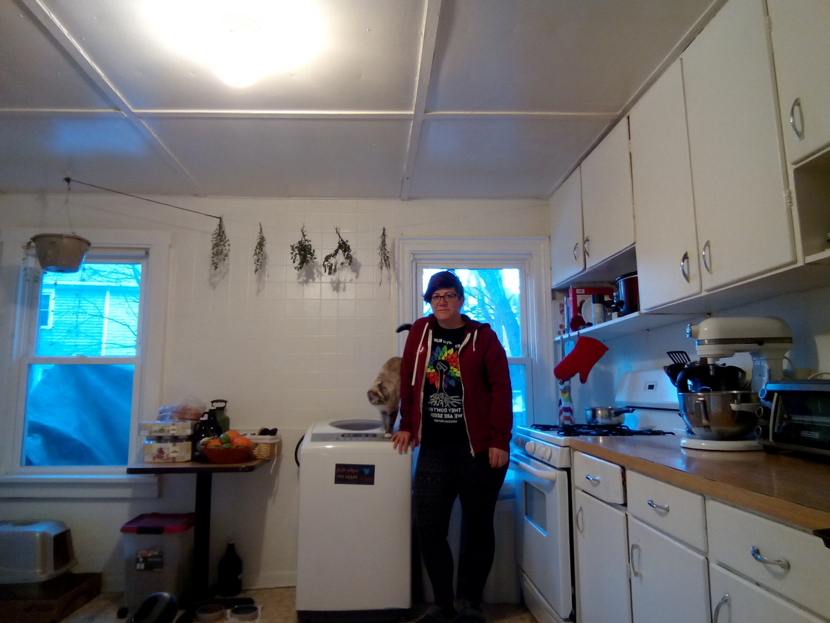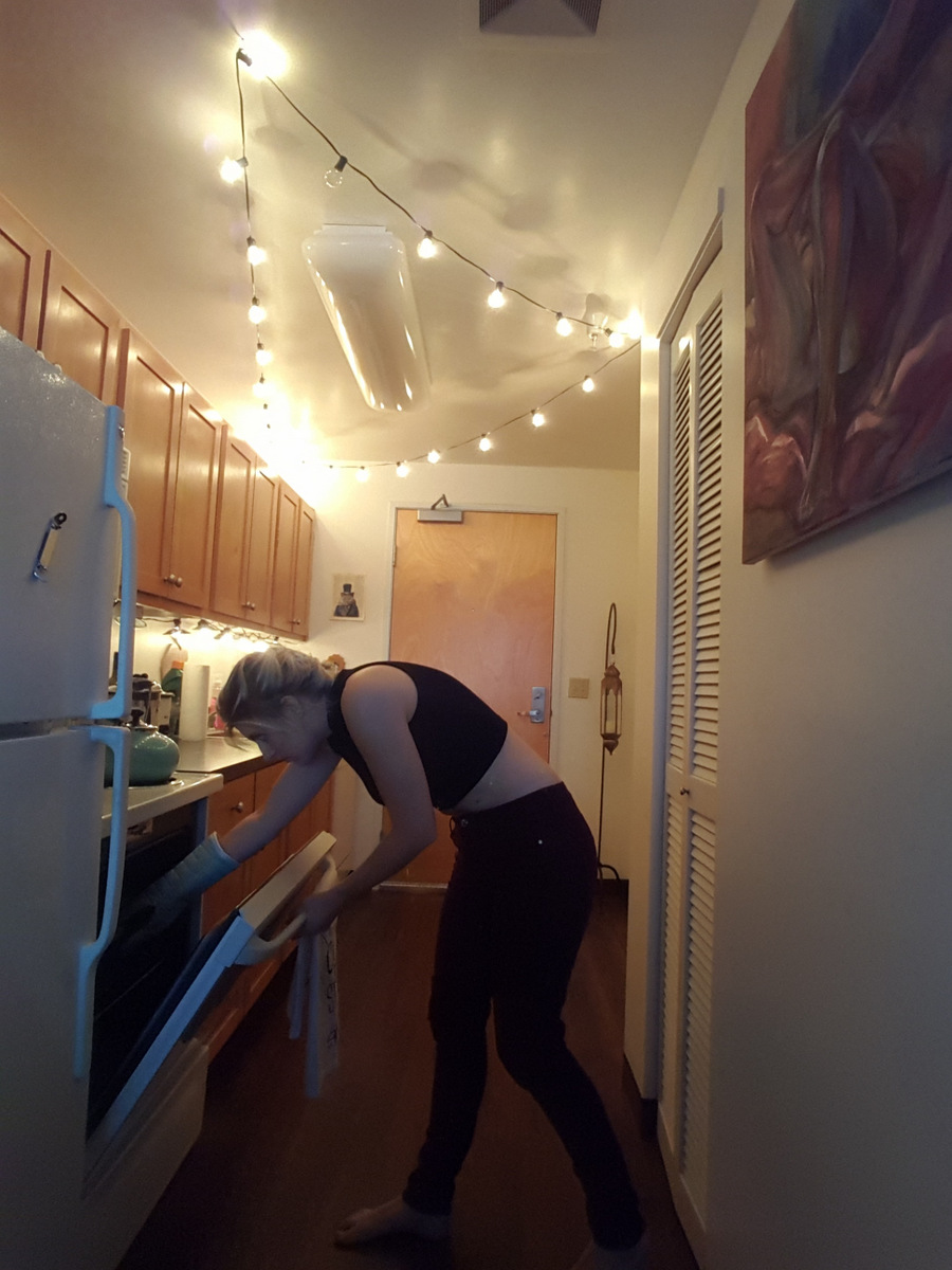 “I like that my kitchen is also my entryway, it’s quite poetic in a way. Also yes, those are kale chips I’m checking on, you are correct.”