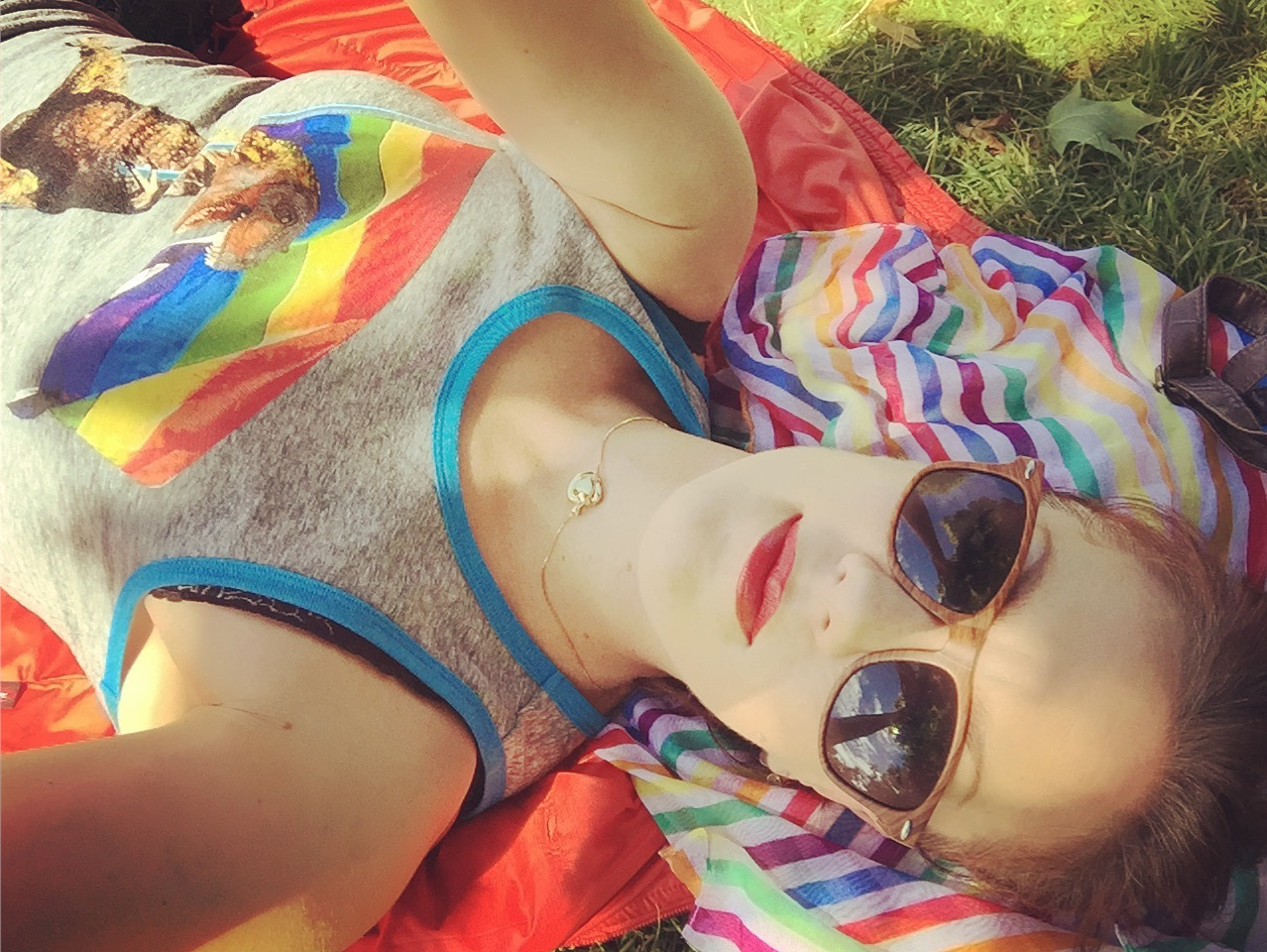 “Post-Bellingham Pride, enjoying a sunny afternoon by the water in all my rainbow glory.”