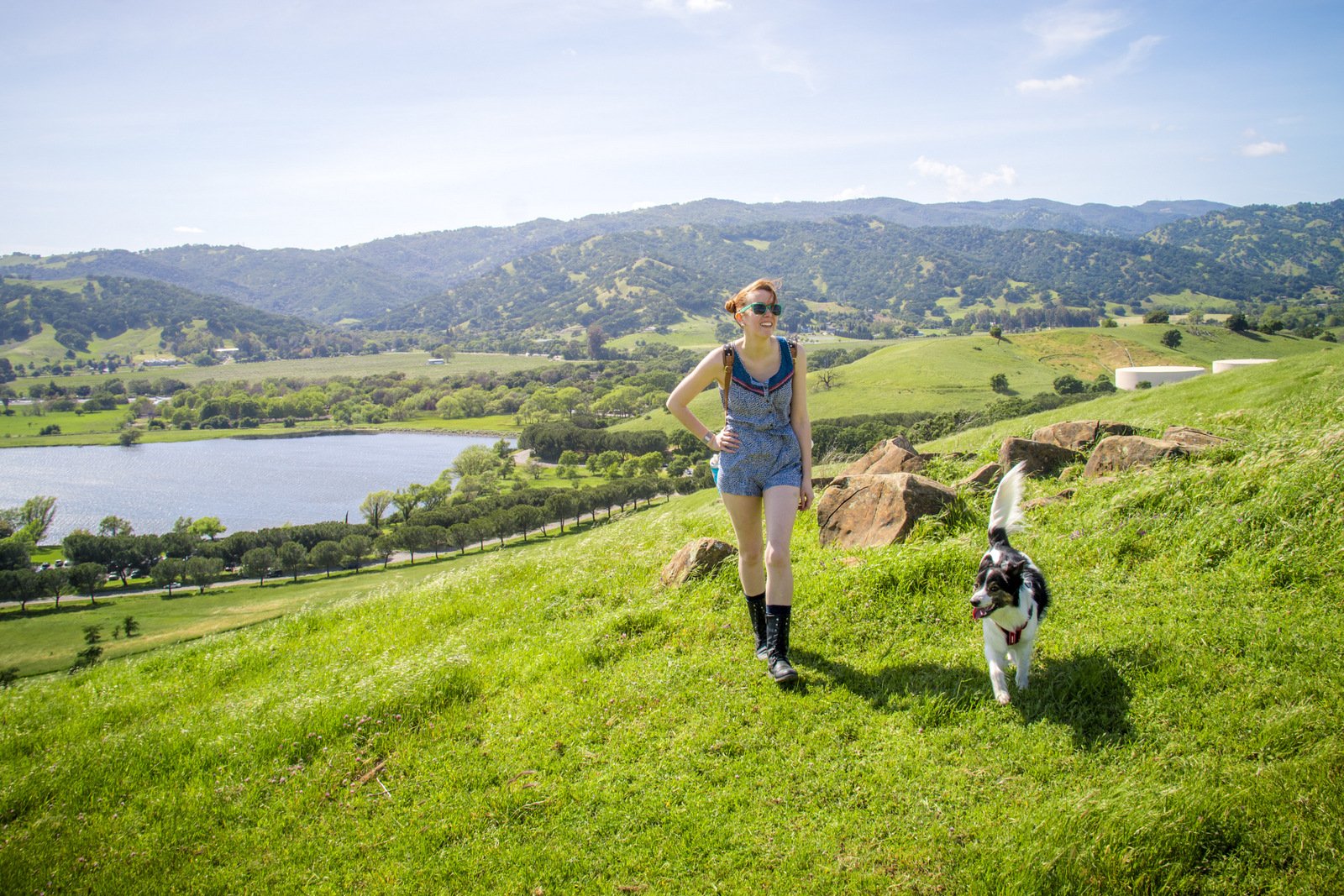 “My friend Nora [the entry below] lives in the Bay Area and I live in Sacramento, and we go hiking at this spot that’s halfway between us. It’s a lot of uphill but there are nice litte cattle paths for my dog to play on and once you get up a ways, there’s a gorgeous view. It was really windy when this picture was taken and there was a good chance both my dog and I would get blown away.”