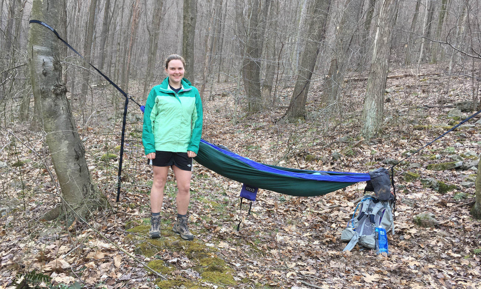 “The morning after camping out at the Bidwell Shelters at Ohiopyle State Park. Not pictured: The rainfly over my hammock that I didn’t need but used anyway. I originally took pictures before the sun was fully up, and then took more pictures once I had already started packing up, ostensibly because the lighting was better, but also I was putting off starting the hike back. Photo cred: My phone duct taped to a tree.”