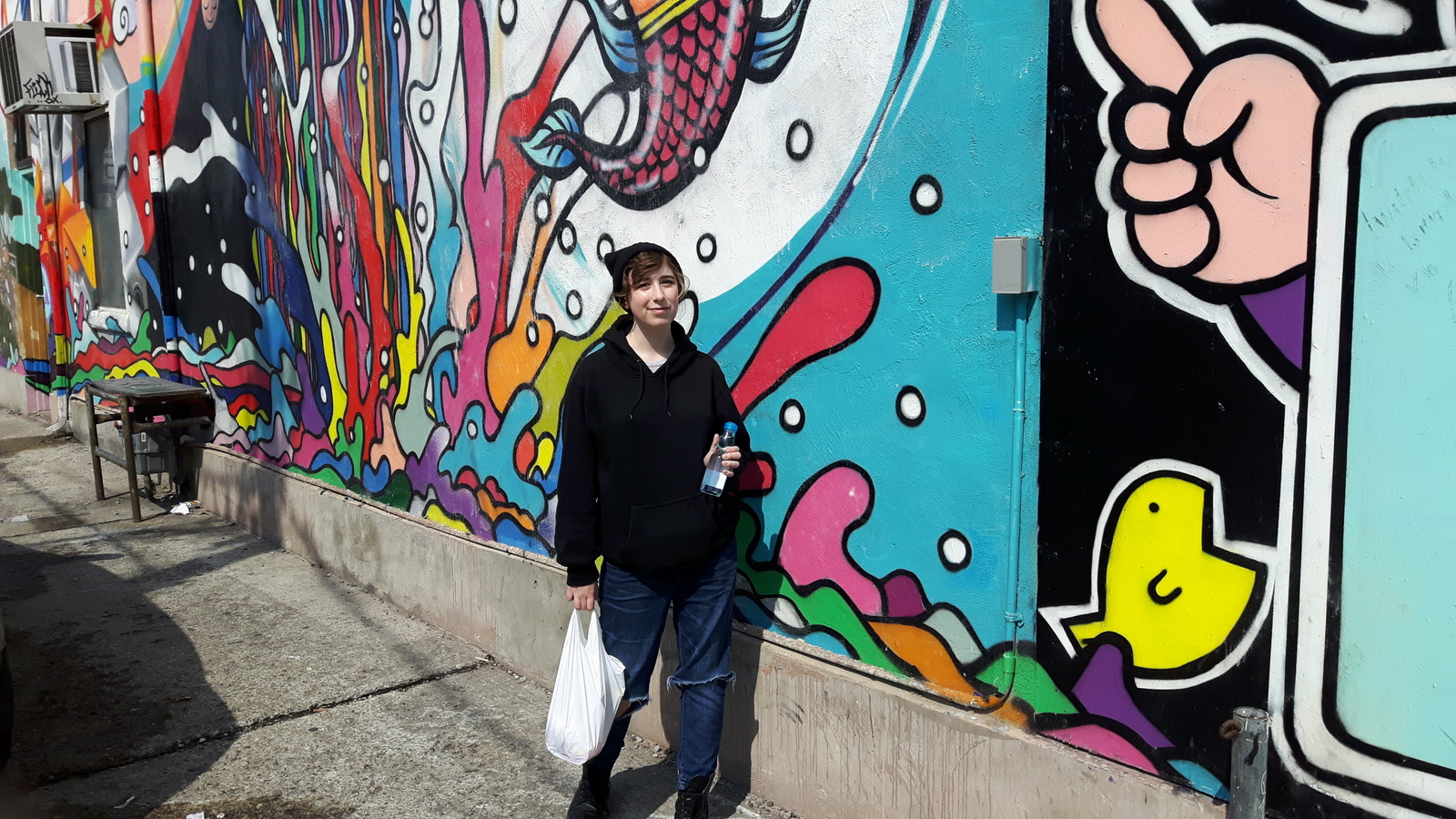 “Posing on Queen Street West after shopping for a friend’s birthday gift and cooking supplies! I love this super fun and colourful mural outside of Sanko, a Japanese shop! If you’re ever in Toronto check it out!”