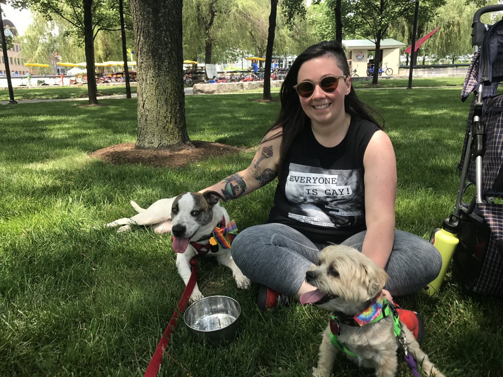 “Syd fell into my lap nine years ago after previous owner died. She’s calm, confident, and doesn’t put up with others bullshit. She’s basically everything I want to be in dog form. Teva is a shelter mutt and is the best adventure buddy a queer gal in the PNW could ask for.”
