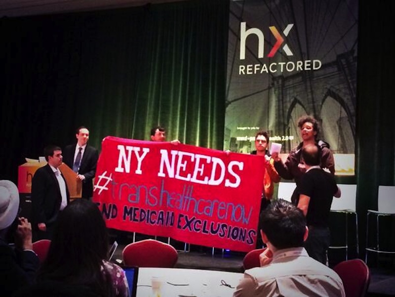 This morning, members of the Sylvia Rivera Law Project, including SRLP membership director Reina Gossett, took over the stage at the HxRefractored Conference in New York City to demand that the New York State Department of Health repeal the 1998 regulation barring transgender people from accessing healthcare through state Medicaid coverage.