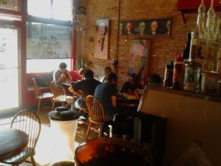 Café Hey (1540 North Franklin St.) – Owned and operated by a local roller derby league member, you know that Café Hey must be all kinds of special. Located in the heart of downtown, Café Hey offers breakfast, lunch, and dinner, as well as a variety of baked yummies and lots of soups. Check out their soup of the day and their giant chocolate chip muffins, which are almost enough for two people. Local activist groups and students meet here often and the wall displays are an ever-changing local art show.