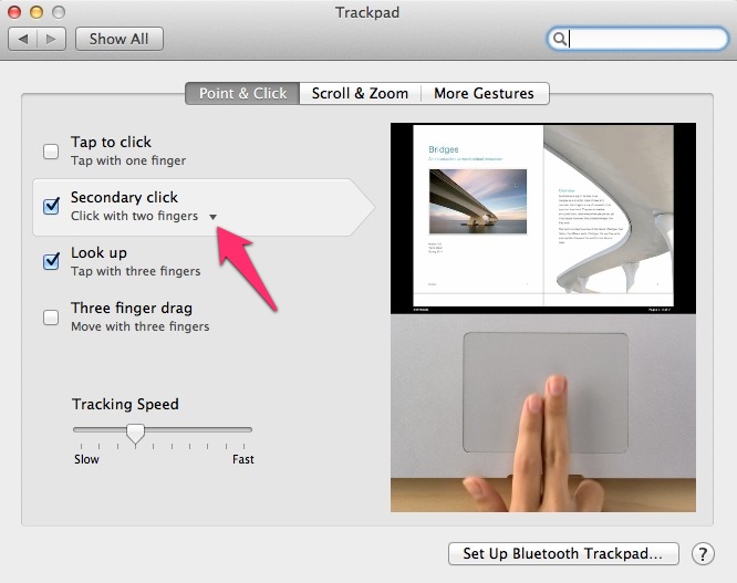 Tap to click.* Popular with PC users, this way you won’t have to push so hard on the trackpad to click. Instead of throwing your weight behind it until you feel a click like an old-fashioned mouse, simply light your finger on the trackpad like a butterfly landing. You have now tapped to click. This, by default, is turned off.