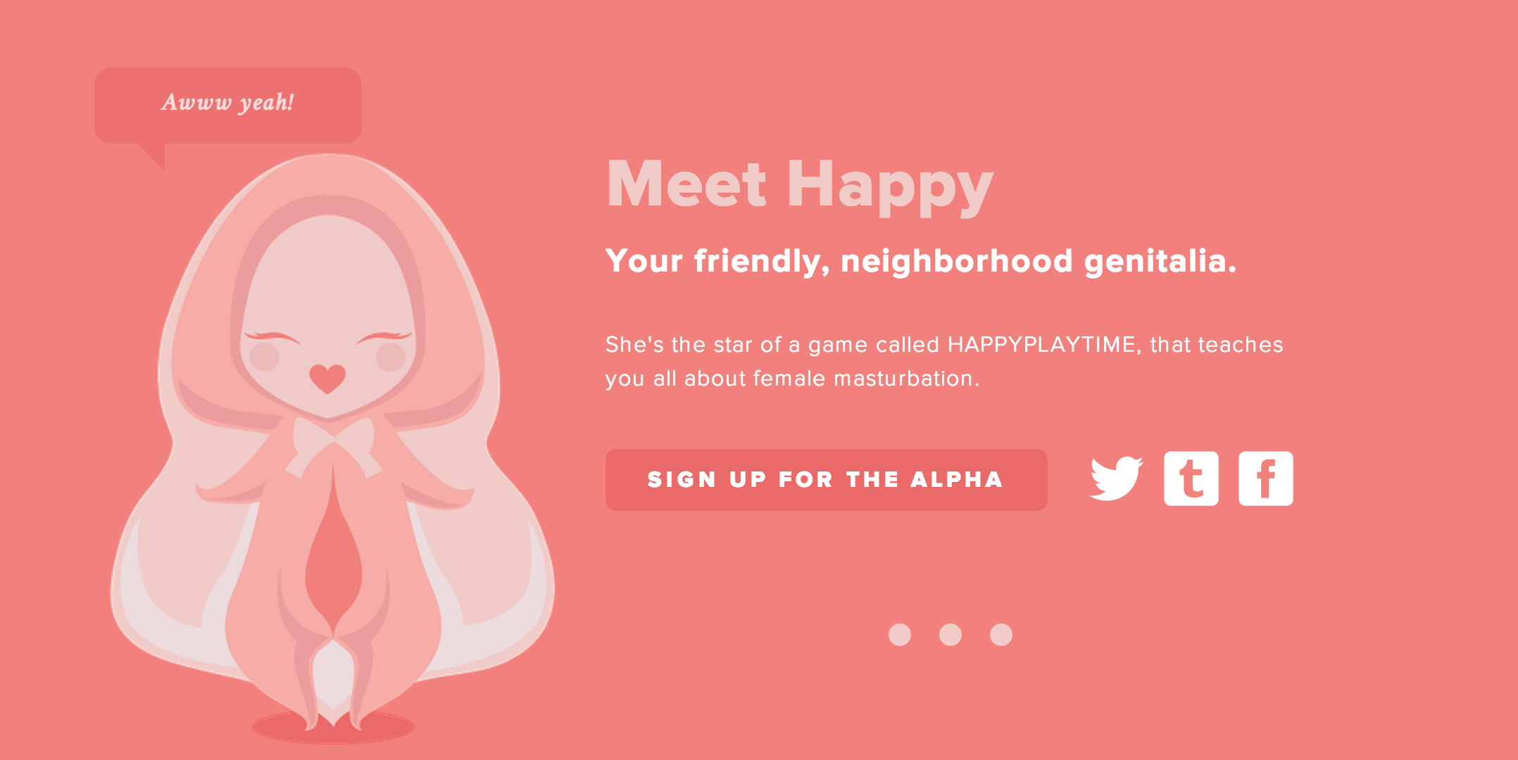 Okay, okay. I know I spent the entire month of May talking about masturbation. But I’m never finished with masturbation, and masturbation isn’t finished with us (ever) and now there’s an app. That’s right! There’s literally an app for that. Happy Playtime by designer Tina Gong will be an HTML5 game compatible with both computers and touch screen devices that will teach you how to masturbate. The goal is to take the stigma out of masturbation for women: