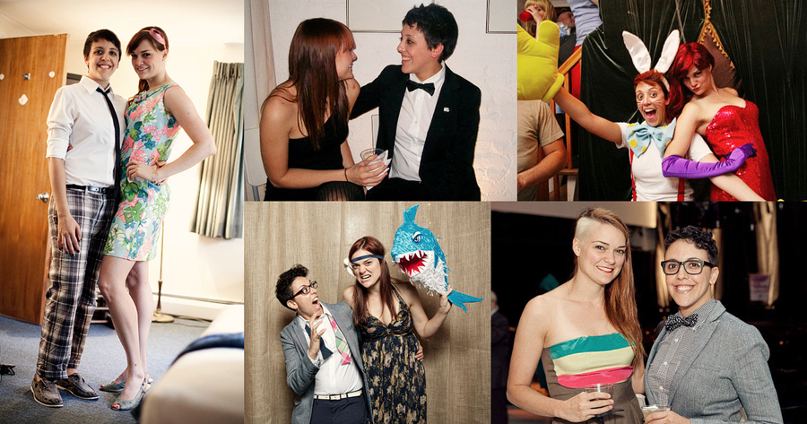Oh weddings. Those glamorous celebrations of love, religion and typically — thanks to thousands of years of tradition and law — heterosexuality. Even though it’s not your day, going to a wedding as a queer can feel like all eyes are on you. What if the groom’s aunt keeps trying to make you dance with her son? What do you do if you’re a bridesmaid who has no idea how to walk in heels? How do you gussy up and still manage feel like yourself? We’ve read your formspring questions, sympathized and rounded up ten very fashionable grrrls and bois who’ve survived a wedding or two (or, in Robin’s case, 300 in the past 10 years) and even figured out how to have fun. Think of them as your own personal queer fairygodpeople, here to turn your beaters into bowties for just one night.