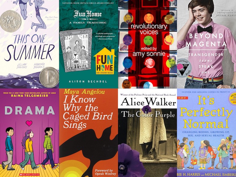 Queer content is a leading reason for attempted bans — between 1990 and 1999, there were 495 challenges related to homosexuality; between 2000 and 2009, there were 361, according to the ALA. (About 10% of challenged books are ultimately banned.) And of the ten most-challenged books for 2016, the top five are cited for having queer content: This One Summer, written by Mariko Tamaki and illustrated by Jilian Tamaki; Drama, by Raina Telgemeier; George, by Alex Gino; I Am Jazz, written by Jessica Herthel and Jazz Jennings, and illustrated by Shelagh McNicholas; and Two Boys Kissing, by David Levithan. (Other books are cited for being sexually explicit, for explicit language, and — in the case of Bill Cosby’s book — for allegations of sexual assault against the author.)