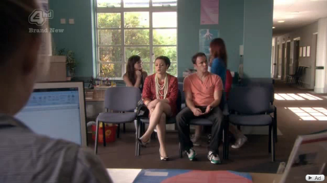Before Katie can hit the stables, she needs to meet Sam at the health clinic to confirm that she’s not knocked up. It’s the UK and not the USA, and so the waiting room is empty and furnished and the doctor is nice.