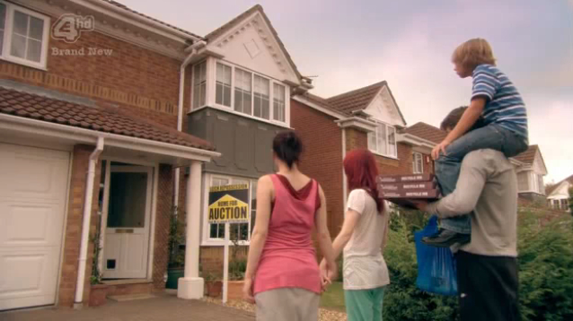 The Repo Men, tweedledum and tweedledee, have arrived! The Fitches scurry to pack and escape while the dudes read out the court order. It takes me longer to pack for a sleepover at my girlfriend’s, I hope someone got Emily’s strap-on & Naomi Love Mementos. Little James kicks the repo men through the door when they try to peek through the cat flap. Aww. Remember the cat flap? It would have hurt more if he was wearing his stilettos.