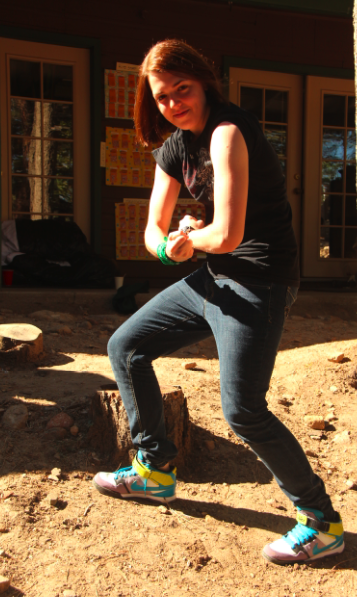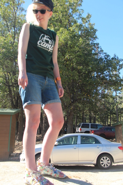 I’m no Robin when it comes to snapping los fotos, so cut me some slack on the quality. However, at camp, I asked the HBICs if we could do a post on your kicks. In the dining hall, Marni announced that I was looking for people to show off their laced-up bests and they all werked it. Also, I’m always game to run around in between workshops/panels/feelings and take pics of queers from the knees down.