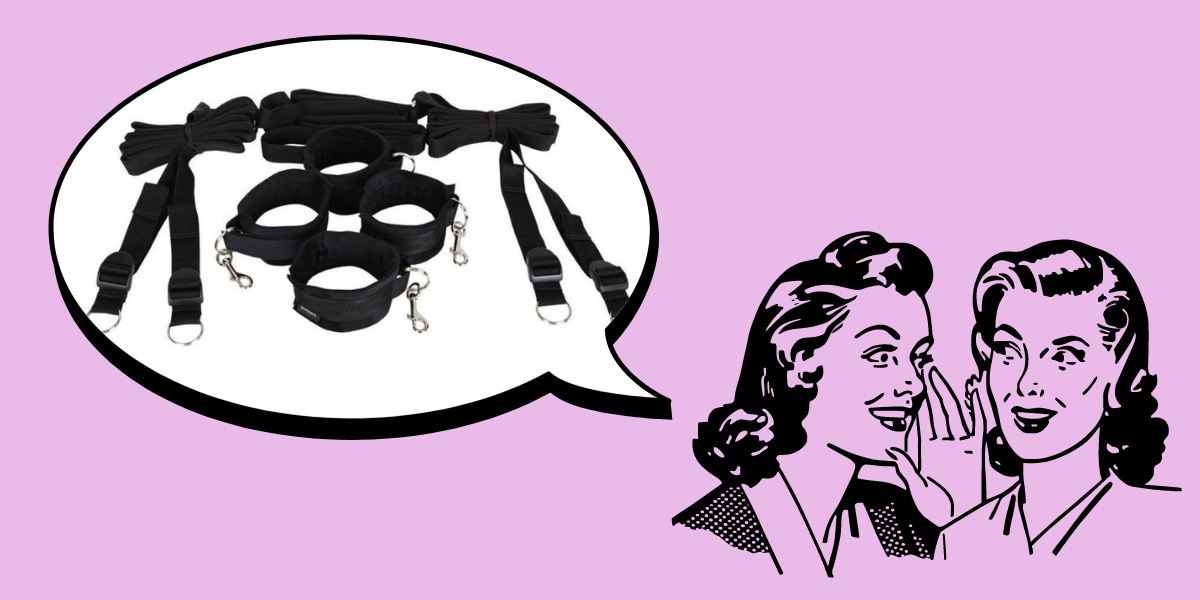 Over the last few years, sex toy companies and stores have asked us to review their toys in exchange for, you know, their toys. Today we’re mixing it up — we’re reviewing the Sportsheets Under the Bed Restraint System, available at Lovers.