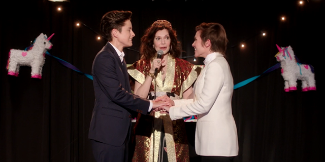 Yesterday Season Two of Cameron Esposito and Rhea Butcher‘s beloved queer comedy Take My Wife fell from the heavens and landed on iTunes. It was quite a surprise! Riese promised we would give up on life altogether if the show didn’t find a home after Seso shuttered seven months ago, and to be honest it felt like maybe that’s what we were going to have to do. No news ever came of a pickup. Then, like a unicorn on a dark night when you’re lost in a haunted forest, it just arrived. And then rocketed to the top of the charts on iTunes.