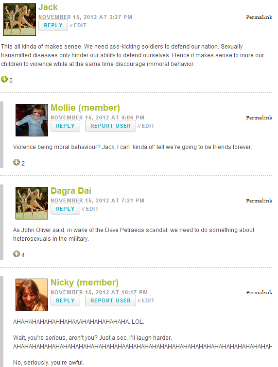 Hansen dished out some natural cleaning tips and her new column “Make A Thing” will satisfy your need for DIY craftiness. Brittani hosted a video party, Stef talked about the perils of identifying as bisexual on OkCupid and our college lesbians are giving NaNoWriMo a go. Do you like reading queer or queerish lit? Go vote for your favorite “lesbianish” books at Goodreads until November 25th. Then check out Lez Liberty Lit #7. But before all that, take a look at this week’s sparkly comment superstars!