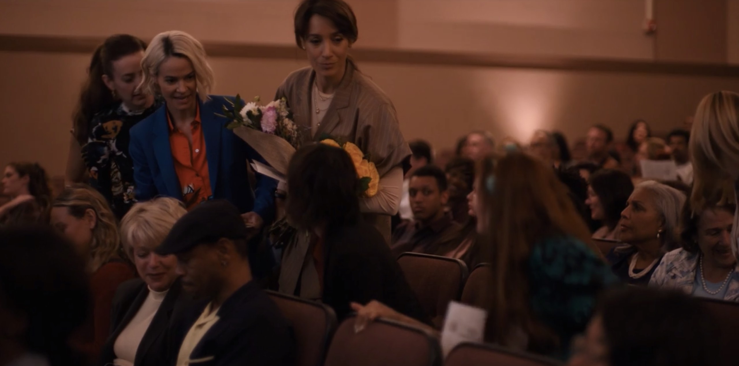 “Oh, everyone’s here!” Notes Shane, there with her sort-of ex-wife, when Alice Queen of Late Night Piesecki gets the whole theater to scoot over to accommodate her relationship. Bette instructs the row to applaud wildly upon Jordi’s entrance to compensate for years of parental neglect she may never recover from without serious immersive therapy.