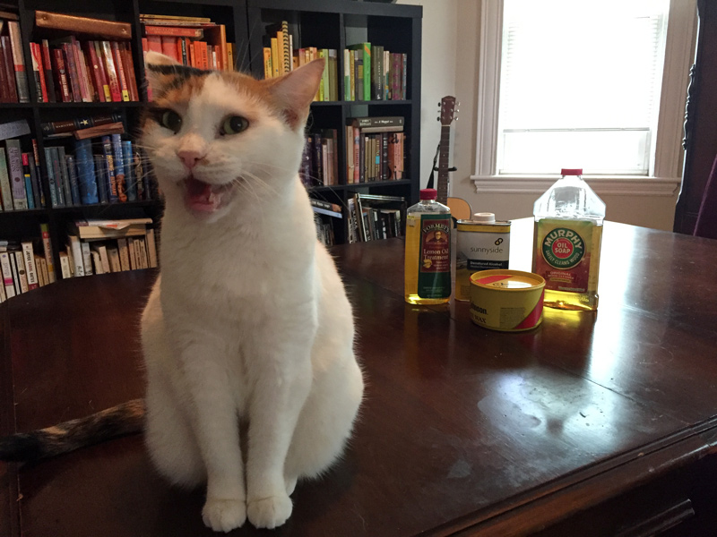 6. Clean it again. Get back at it with the Murphy’s to remove any steel wool dust/dirt/etc. (Same as step 1.)